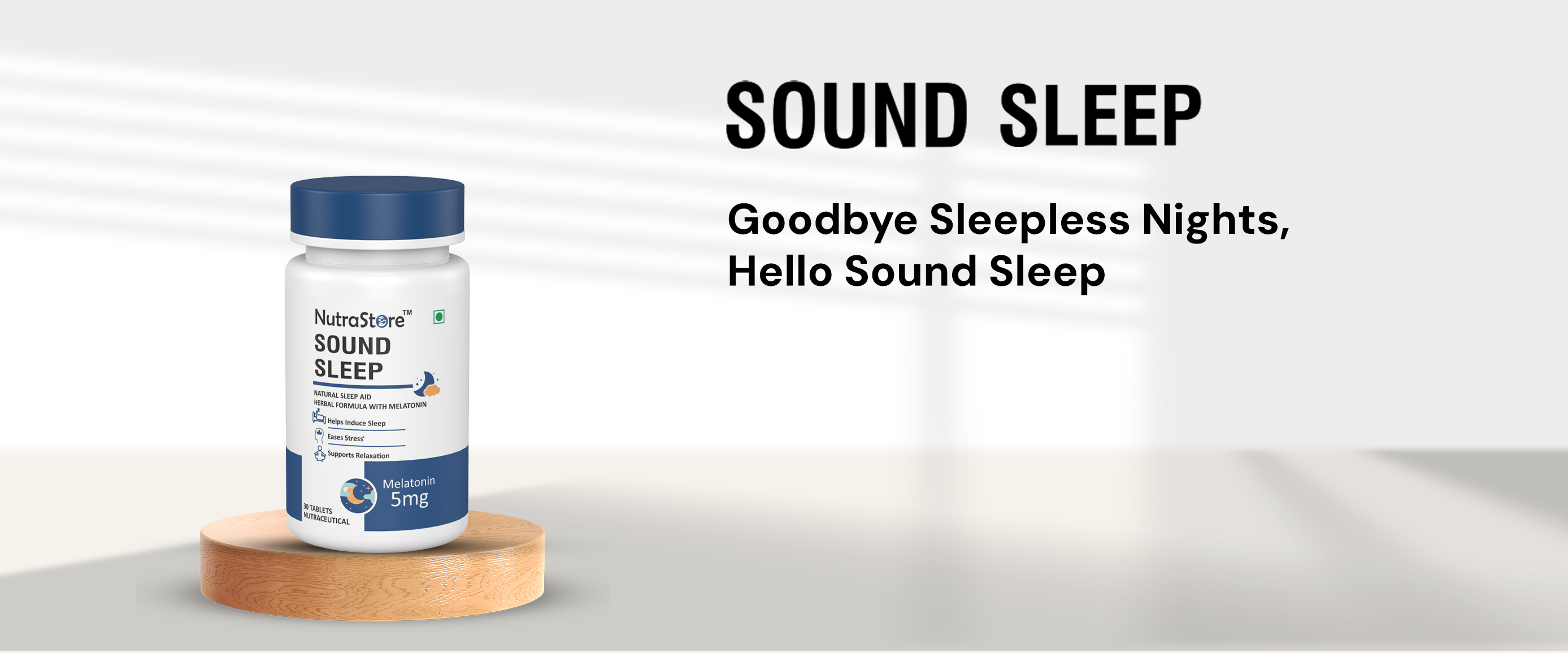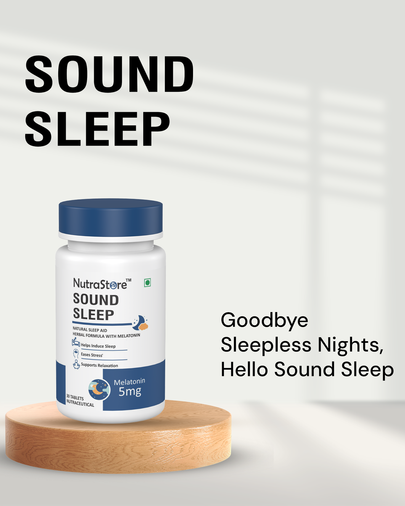Experience deep, restful sleep and wake up refreshed with NutraStore Sound Sleep – your ultimate natural sleeping tablets with 5mg melatonin, enriched with Ashwagandha, Passion Flower, Chamomile, Tagar, Brahmi and Jatamansi for stress relief, relaxation and revitalizing rest.